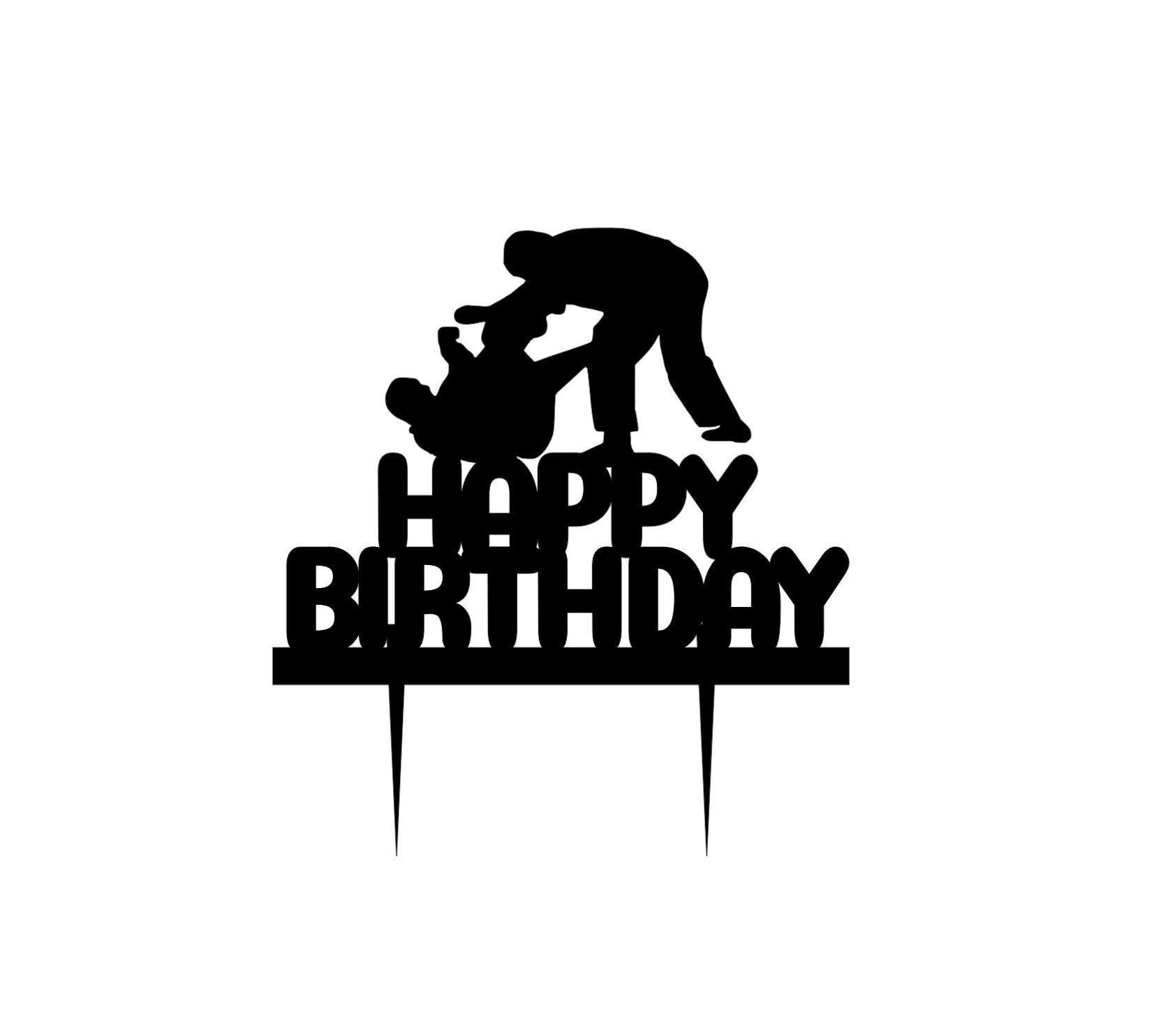 All cake toppers are made from 110 lb card stock paper. They come attached to one or two clear acrylic sticks to insert into cake.